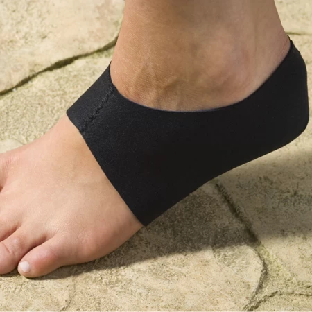Sewn-in Sealed Ice® gel pads, located on each side of calcaneous below the level of the talo-calcaneal joint, limit lateral and medial movement of heel and provide soothing cold therapy to reduce heel inflammation.Supportive neoprene material provides compression to control edema and absorbs shock from heel strike.